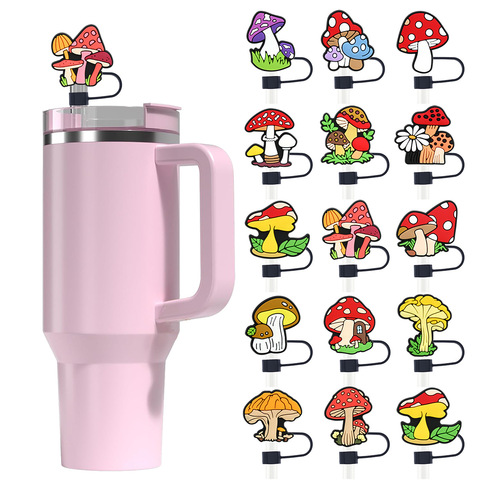 Niedliche 10mm Pilz Stroh Abdeckung Kappe Wieder verwendbare weiche Kunststoff Cartoon Stroh Topper für Becher Zubehör Großhandel Bar Zubehör