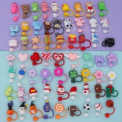 10mm 3D botella de agua taza paja Topper Pvc Soda bebidas paja encantos dibujos animados Drinkware accesorios vaso con tapa de paja